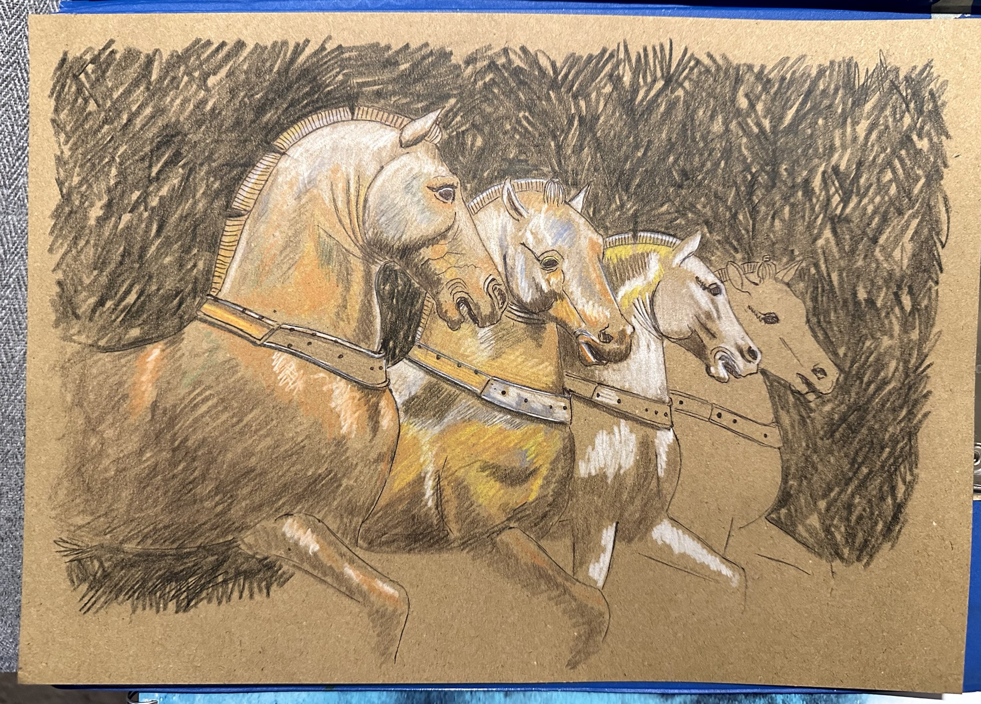 Your own art - have you still got any drawings or paintings that you did when you were young? Choose the same subject, bring along the old picture to the session and then create a new picture as an adult.